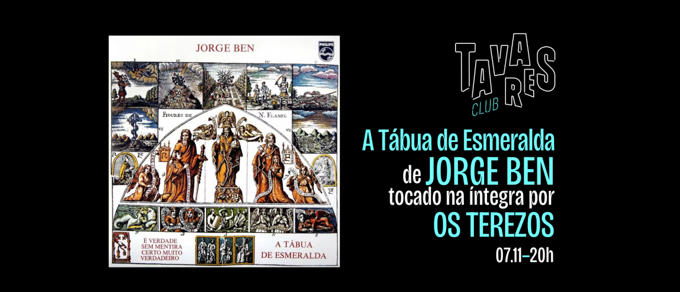 No dia 07/11, o Tavares Club apresenta o quarteto Os Terezo em uma homenagem ao álbum icônico A Tábua de Esmeralda (1974) de Jorge Ben Jor. Esta obra enigmática e luminosa mistura espiritualidade, filosofia e swing brasileiro, invocando alquimistas e orixás em um samba-rock transcendental.